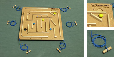 Worum geht es?            Einen Ball auf einer Plane zu um Löcher balancieren
