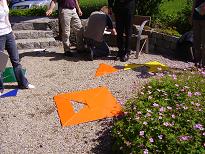 Anleitung                                Jedes Team hat ein Set gleichfarbiger Puzzleteile. Ziel ist es, das am Ende der Übung jedes Team ein komplettes Quadrat hat, bei dem keine zwei Puzzleteile die gleiche Farbe haben dürfen.