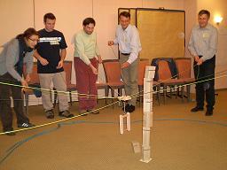 Anleitung                                Das Team soll eine frei tragende Brücke bauen, welche 140 cm überspannt. Als Material sind nur die Holzbrettchen erlaubt, welche ineinander verflochten / gesteckt werden.